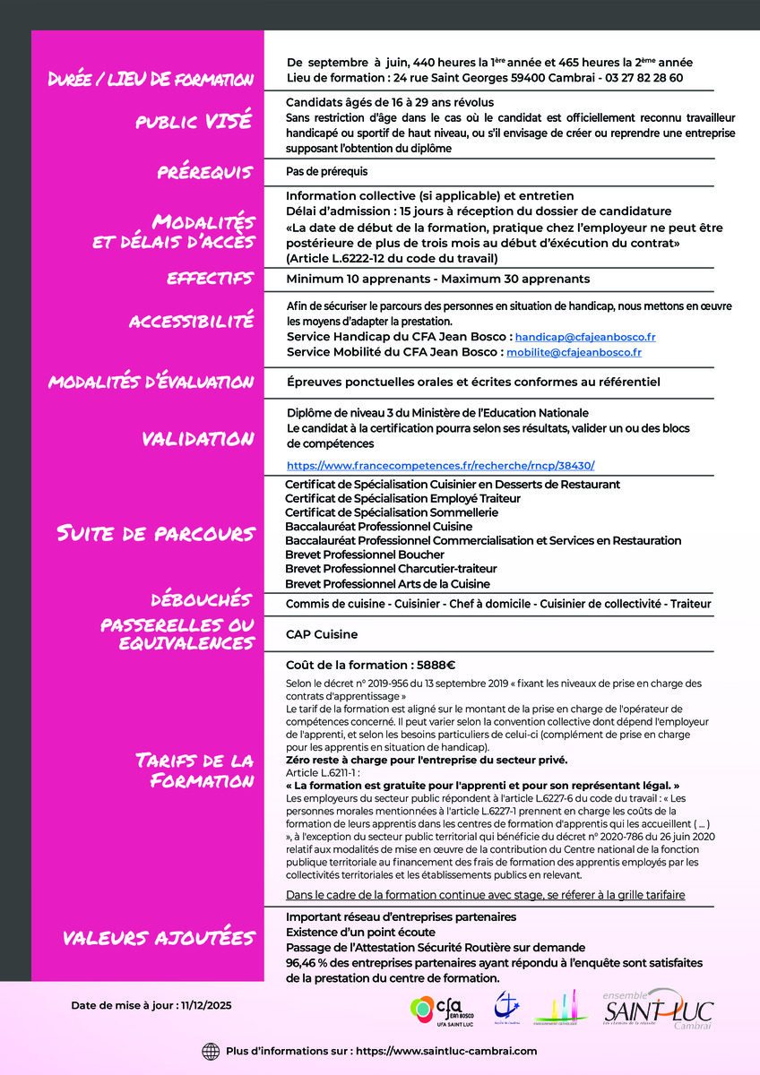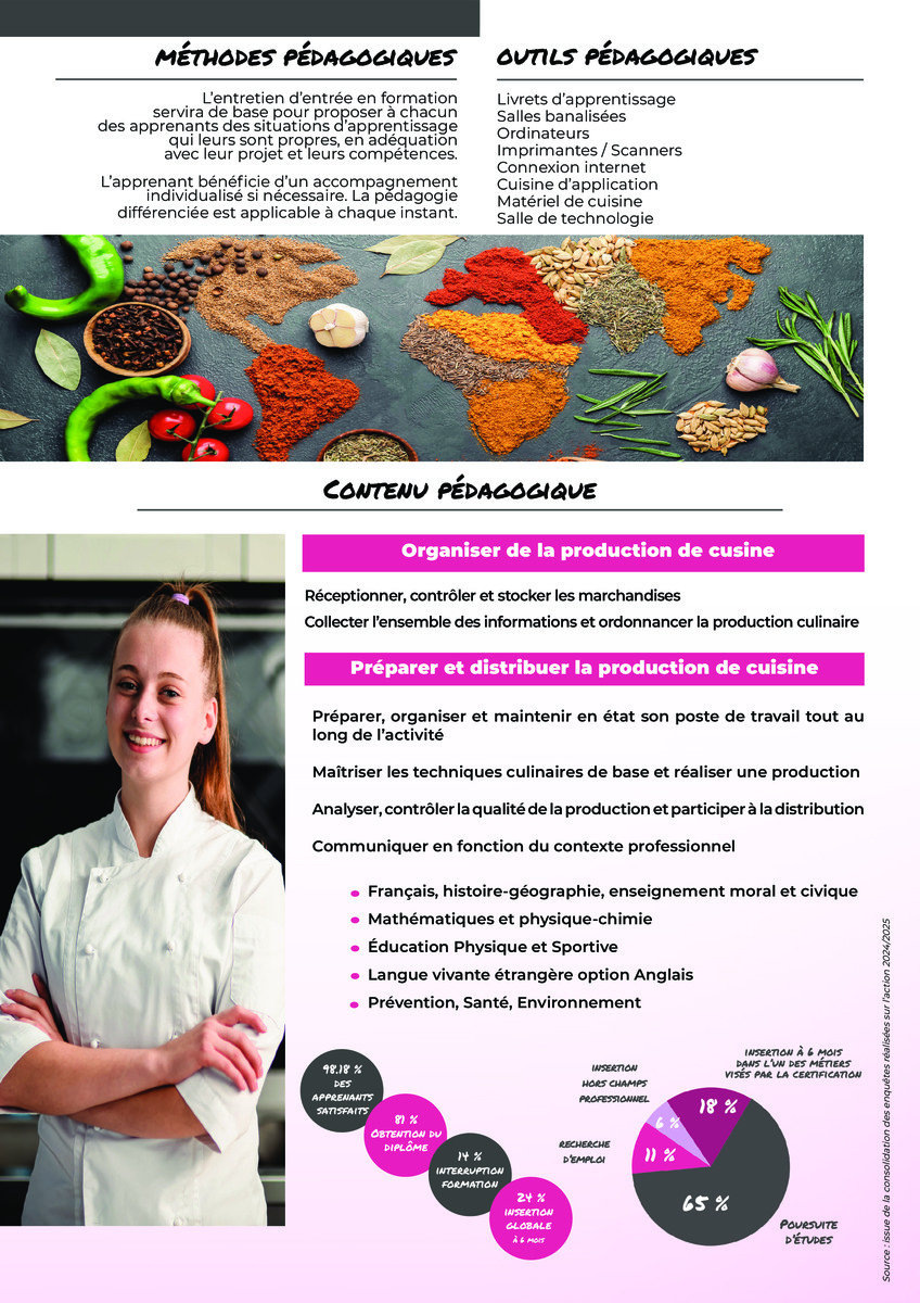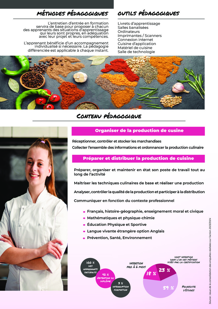 La formation s'adresse à toute personne souhaitant acquérir des compétences professionnelles dans le domaine de la cuisine