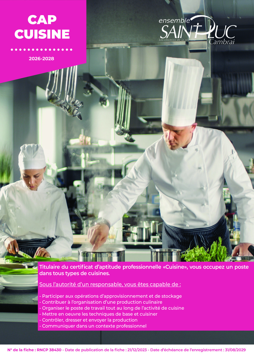 Titulaire du certificat d’aptitude professionnelle « Cuisine », vous occupez un poste dans tous types de cuisines.