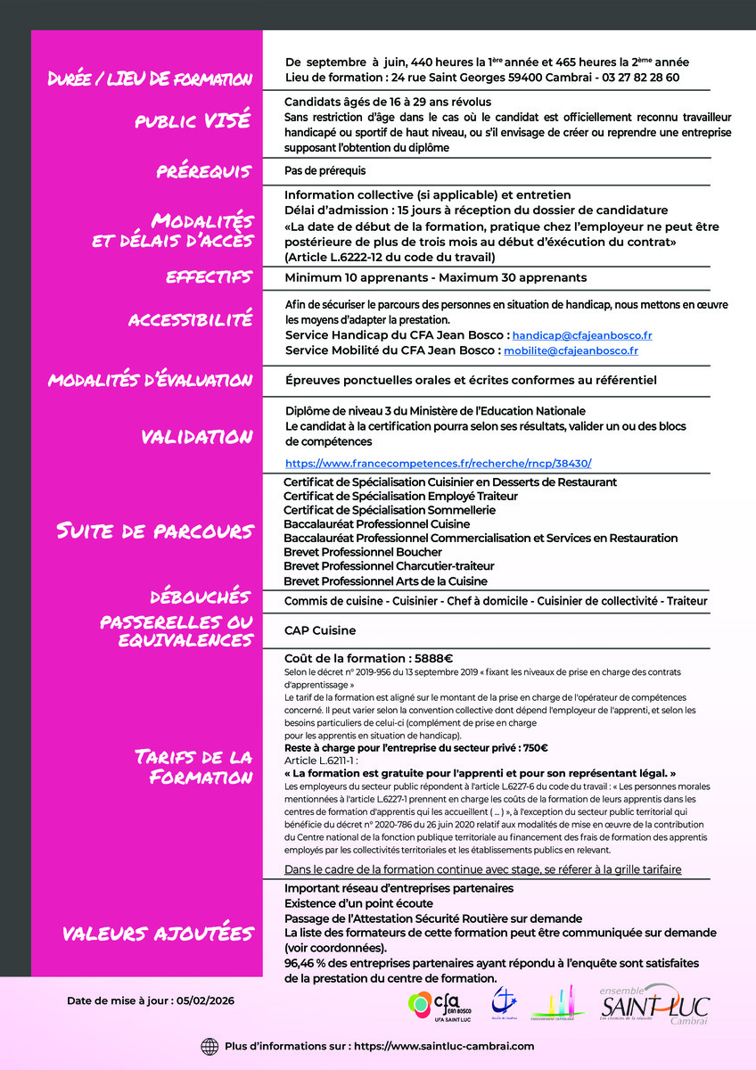 Lieu de formation : 24 rue Saint Georges 59400 Cambrai – 03 27 82 28 60