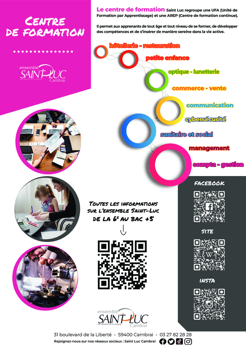 Si vous souhaitez obtenir plus de renseignementssur nos formations, nous contacter sur arep-ufa@saintluc-cambrai.com, pour établir ensemble une formation en adéquation avec vos besoins.