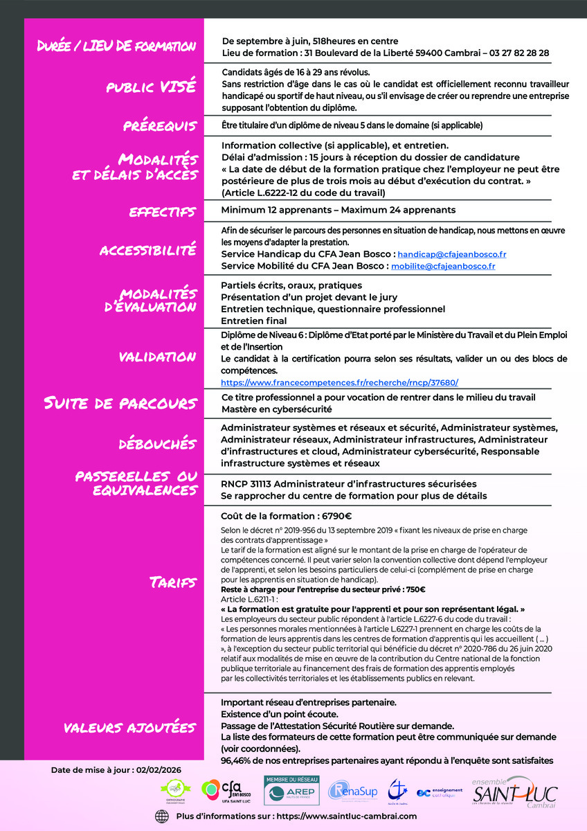 La formation s'adresse à toute personne souhaitant assurer la mise en place, la maintenance et la sécurisation d'infrastructures informatiques, en collaboration avec les équipes informatiques.