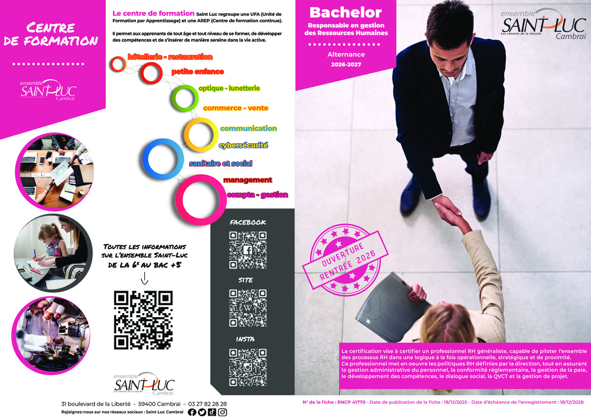 Si vous souhaitez obtenir plus de renseignementssur nos formations, nous contacter sur arep-ufa@saintluc-cambrai.com,
