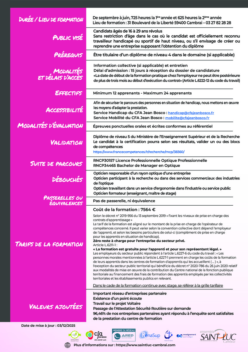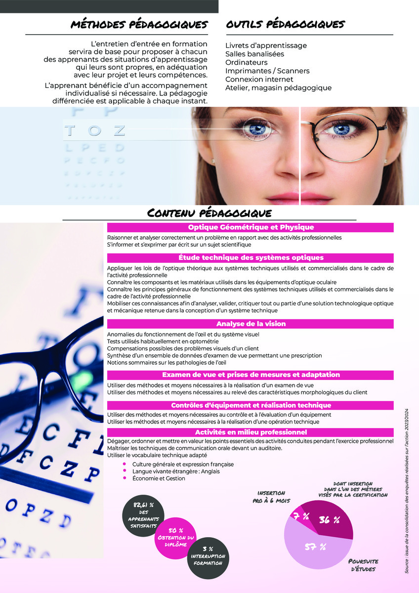 Il s’adresse à toute personne répondant aux prérequis, qui souhaite acquérir des compétences professionnelles dans le domaine de l’optique.
