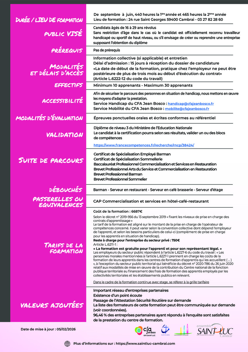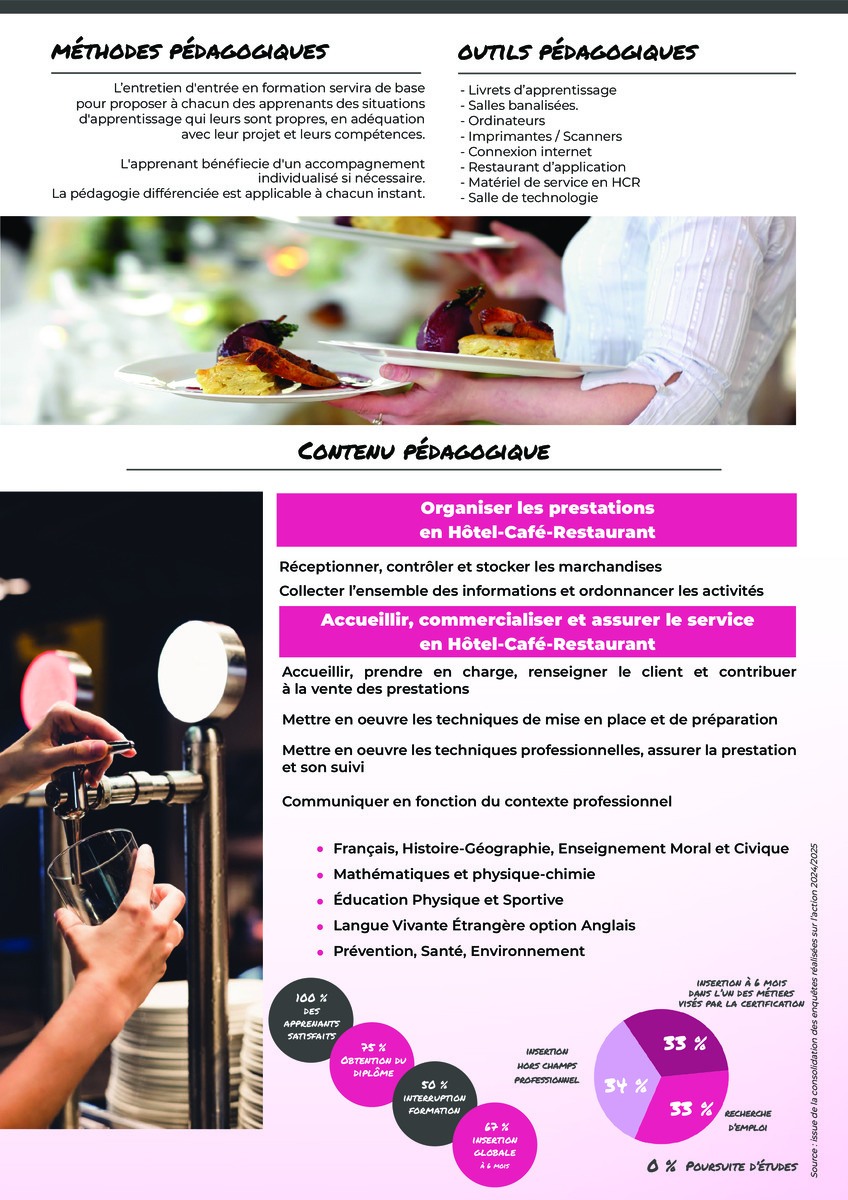 Il s’adresse à toute personne répondant qui souhaite acquérir des compétences professionnelles dans le domaine du service en Hôtel-Café-Restaurant.