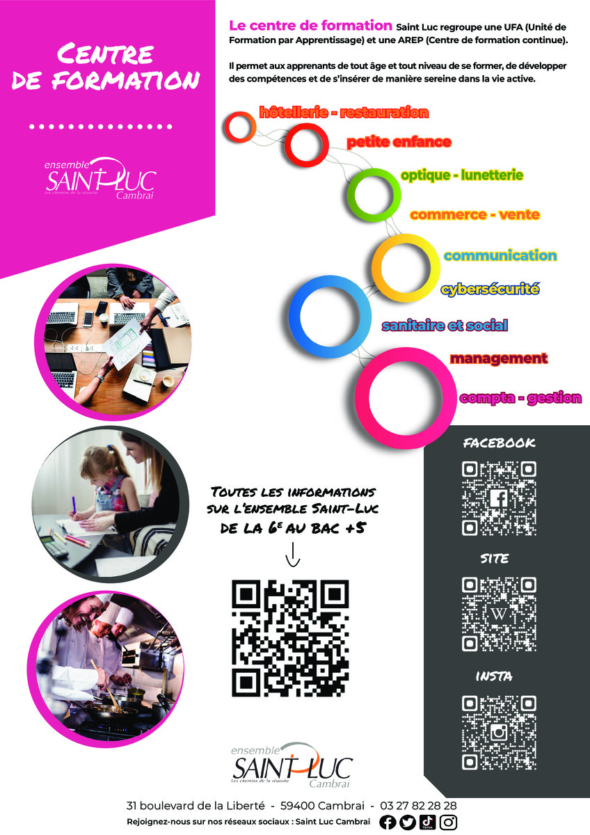 Si vous souhaitez obtenir plus de renseignementssur nos formations, nous contacter sur arep-ufa@saintluc-cambrai.com, pour établir ensemble une formation en adéquation avec vos besoins.
